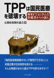 韓国への視察を元に、韓米FTAから見えてくるTPPの日本の医療への影響を論じた本邦初の単行本。米営利企業の参入で薬剤費・医療材料費は高騰し、「誰でも、いつでも、どこでも」安心して医療を受けられる日本の国民皆保険制度は空洞化する。「国民皆保険制度のせいで商売が出来ない」と米国企業が日本政府を訴える―― そんな無謀がまかり通るTPPを許せますか!?