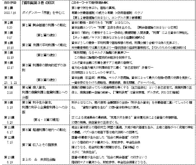 | 【 | 全13回 | 】 | 資本論第3巻を13回に分けて、学習します。 |